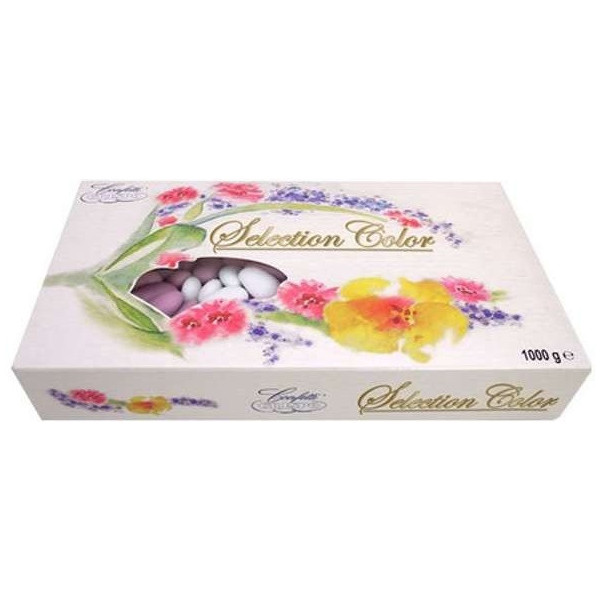 Confetti Selection Color Lilla per cerimonia al cioccolato, cacao 70%, ricoperti da un soffice velo di zucchero profumato, in scatola Selection Color.