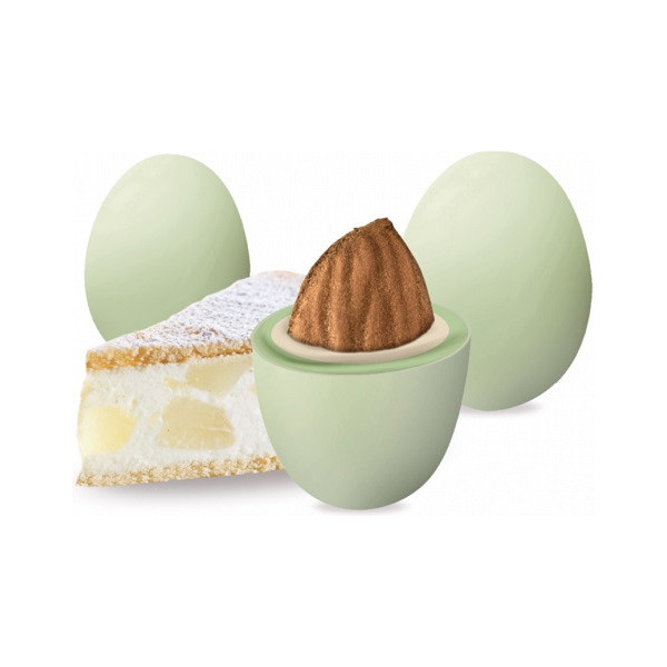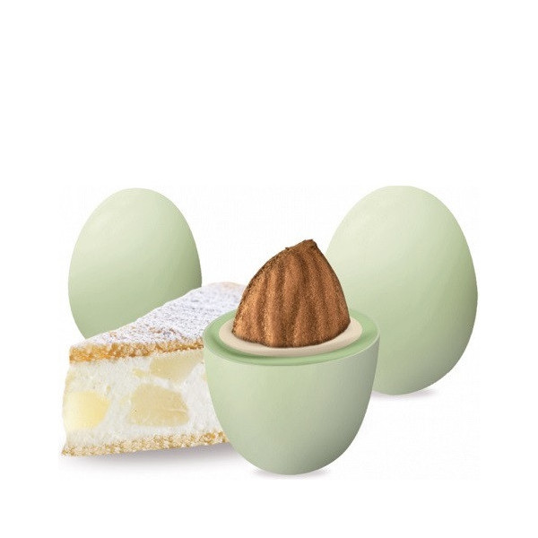 Maxtris Nuance Pea Green gusto Ricotta e Pera, da 1 Kg: confetti verdi con mandorla tostata e cioccolato bianco al gusto ricotta e pera, confettati nuance verde pisello da Maxtris