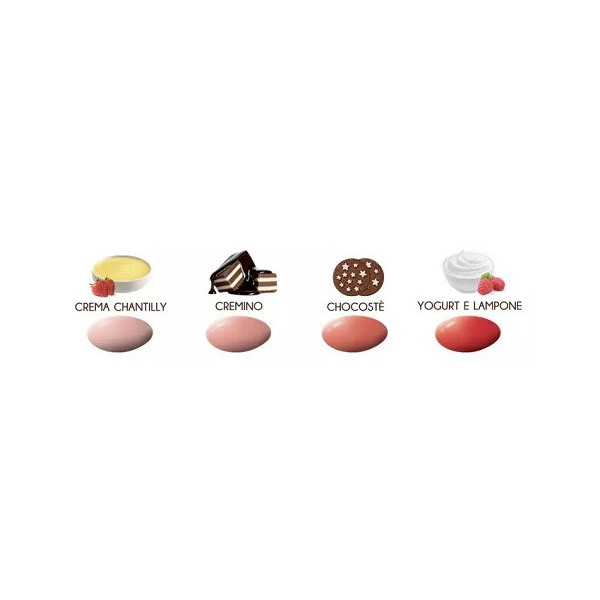 Two Milk Sfumato Rosso confetti rossi sfumati Maxtris 1 Kg: un’anima di cioccolato bianco, fondente, al latte e al latte e alle nocciole gianduia ai gusti assortiti crema chantilly, cremino, chocostè e yogurt e lamponi