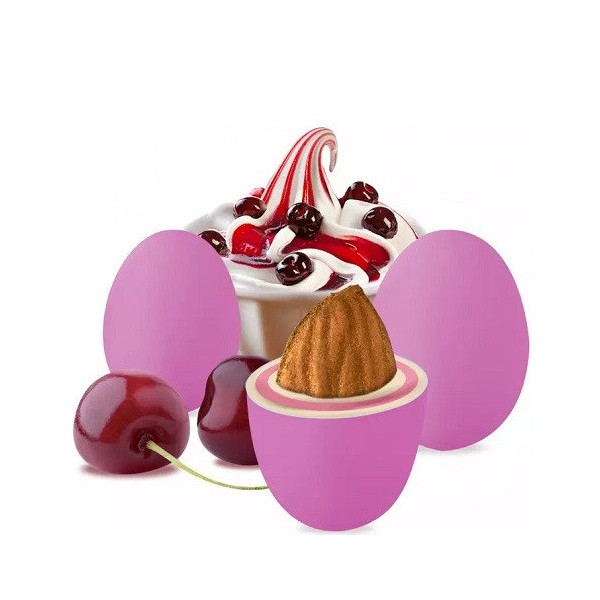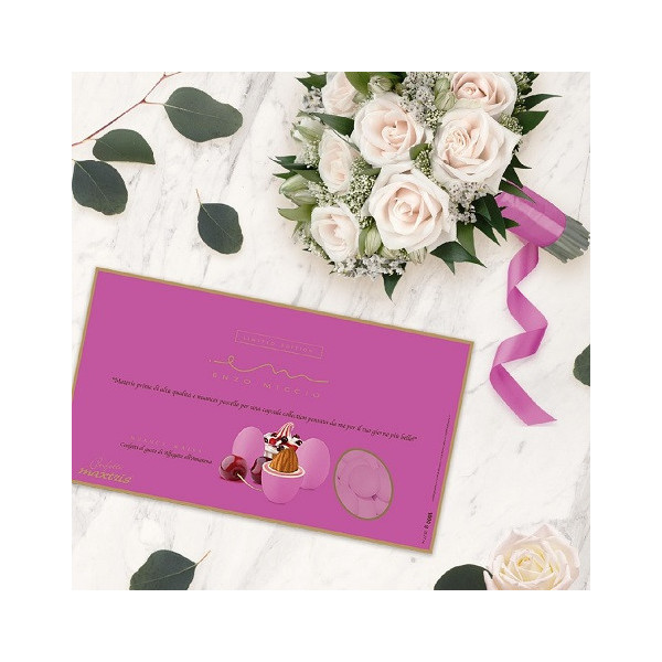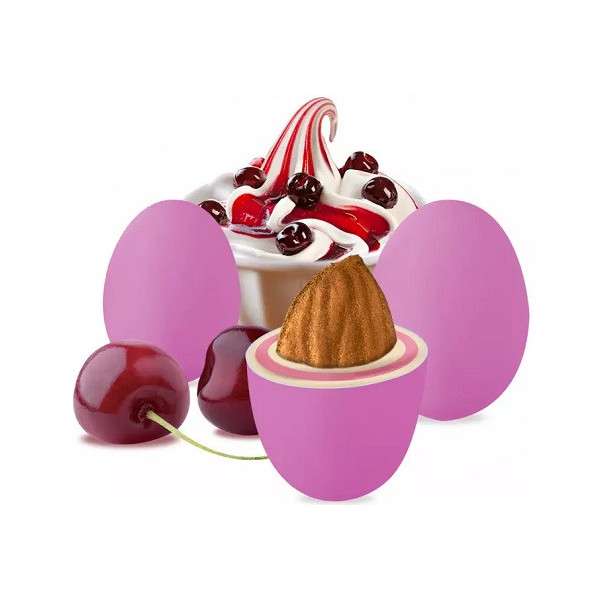 Maxtris Nuance Malva Enzo Miccio gusto Affogato Amarena: mandorla tostata ricoperta da cioccolato bianco al gusto di panna e amarena e da un sottile strato di zucchero.