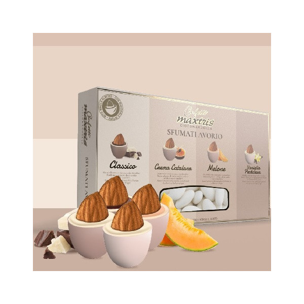 I Maxtris Sfumati Avorio sono confetti ciocomandorla senza glutineideali per confettata avorio.