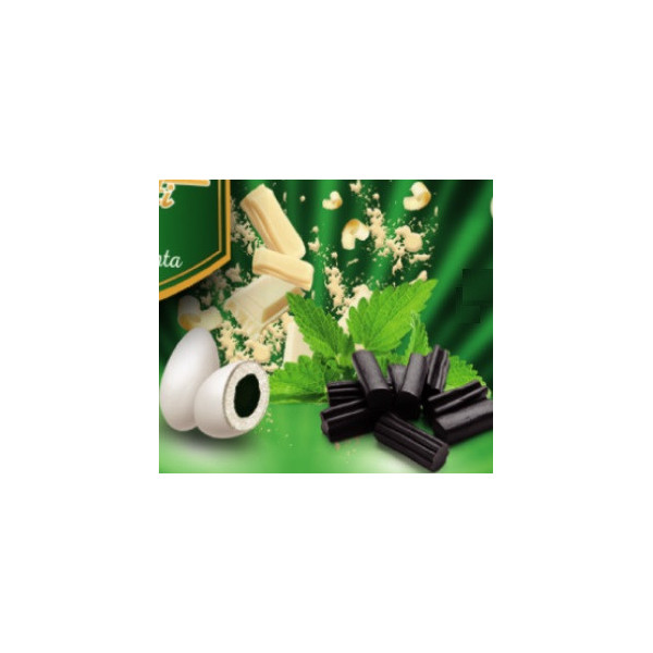 Ripieno - Copertura: caramella al gusto liquirizia e menta - purissimo cioccolato bianco e soffice strato di zucchero
