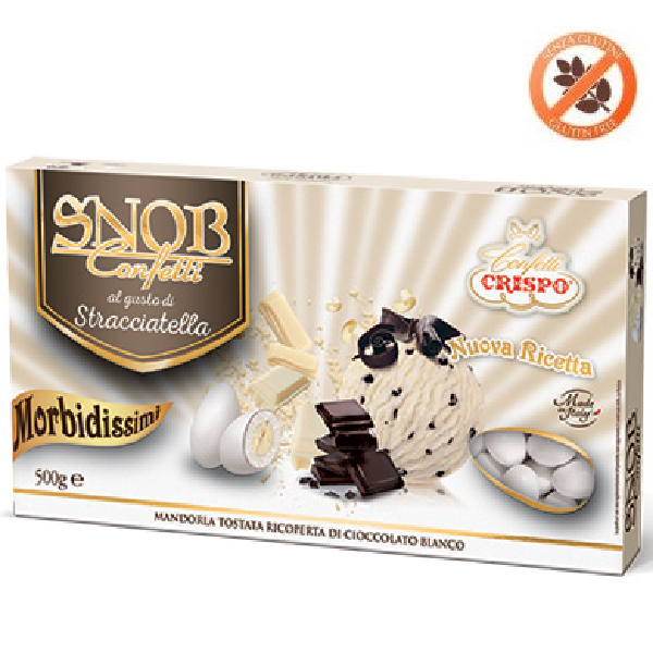 Confetti snob stracciatella da 500 g di Crispo: confetti bianchi con mandorla ricoperta di cioccolato bianco al gusto di crema stracciatella da 500 g di Crispo