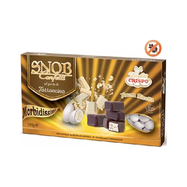 Snob torroncino da 500 g di Crispo: confetti bianchi alla mandorla intera tostata ricoperta di cioccolato bianco al gusto di crema pasticcera al torroncino