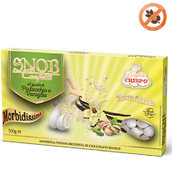 Confetti Bianchi Snob Pistacchio e Vaniglia in confezione da 500 g di Crispo.