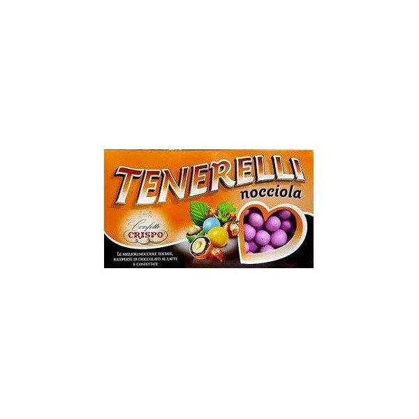 Lieto Evento Tenerelli Colori Assortiti: 500 g confetti colori assortiti alla nocciola Crispo, confezionati in vassoio ed incartati singolarmente ideali per cerimonia