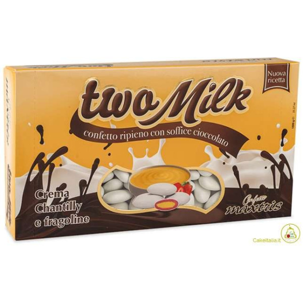 Two Milk Crema Chantilly e Fragoline, confetti bianchi Maxtris da 1 Kg, Confetti per confettata cerimonia.