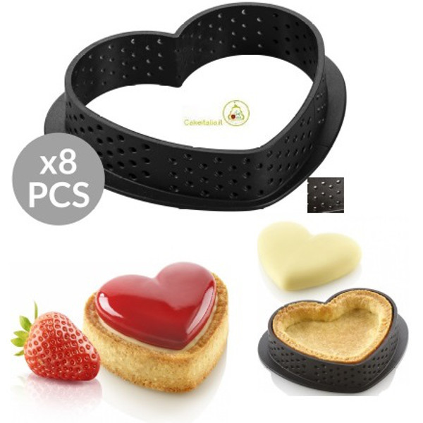 Tarte Ring Amore 8x7xh2 cm Silikomart set 8 anelli: anelli microforati a forma di cuore per ideali stampi per realizzare basi di pasta frolla per tortine o crostatine a forma di a cuore o da usare come cutter o tagliapasta a cuore.