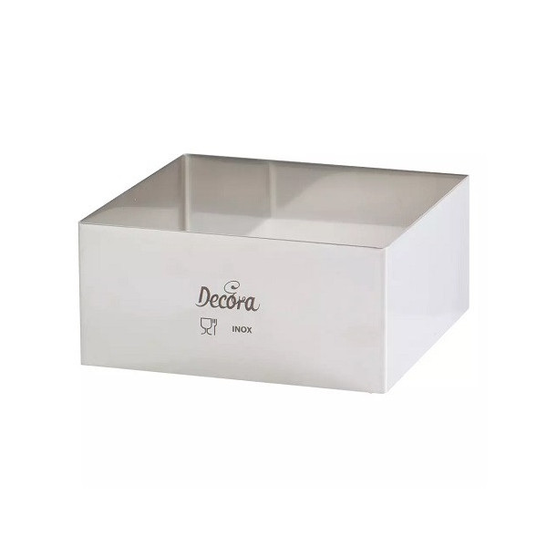 Cornice Quadrata di h 4,5 cm e lato: 24 cm, 26 cm, 28 cm e 30 cm. Sagoma in acciaio inox di forma quadrata, per cotture a forno e preparazioni a freddo da Decora