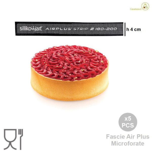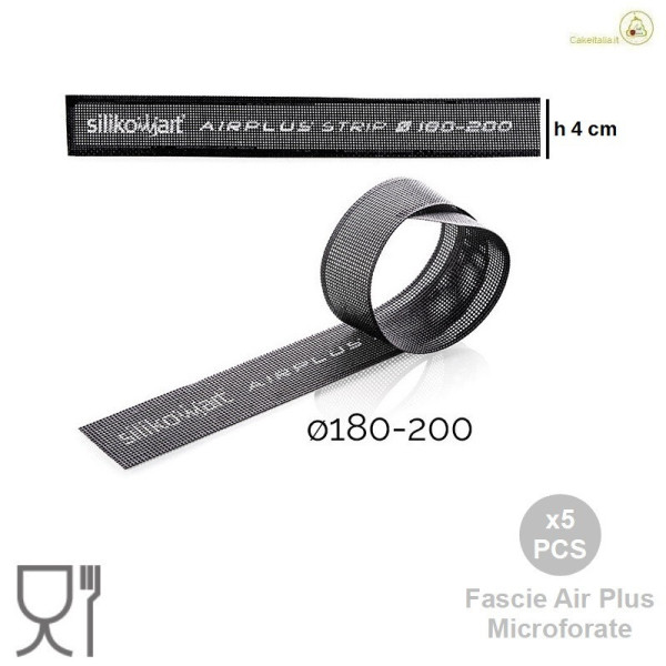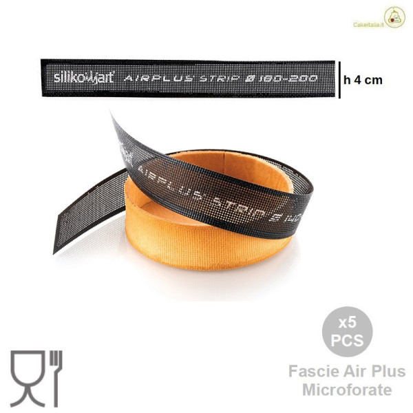 Le Fasce Air Plus Strips della Linea professionale di stampi AIRPLUS "Microperforated Moulds", grazie alla trama microforata ed al materiale, 100% silicone platinico e alla fibra di vetro sono completamente antiaderenti, permettono una uniforme diffusione del calore ed una perfetta cottura in tempi ridotti.