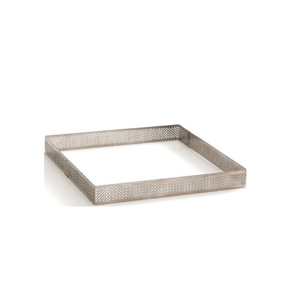 Stampo ad anello quadrato in acciaio micro-forato per multi-porzioni di lato 15 o 20 cm ed h 2 o 3,5 cm. Fascia o sagoma quadrata ideale per realizzare basi per crostate o come cutter o tagliapasta.