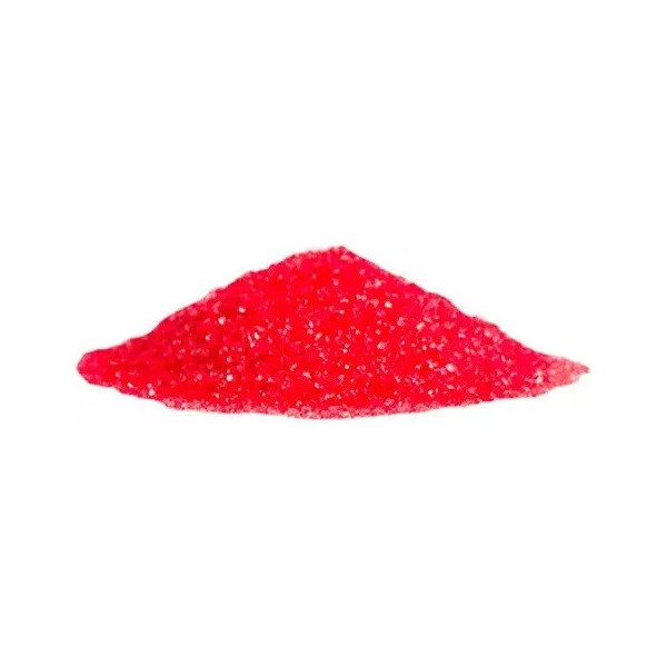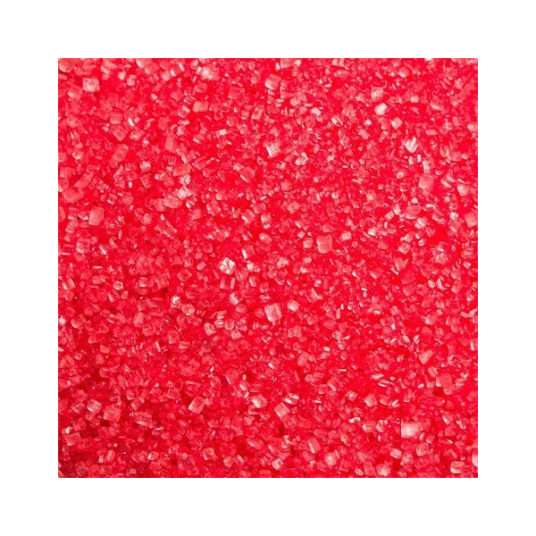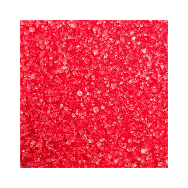 Cristalli di zucchero extra-fine, di colore rosso, effetto glitterato o scintillante, dal colore intenso, vivace, lucido e brillante.