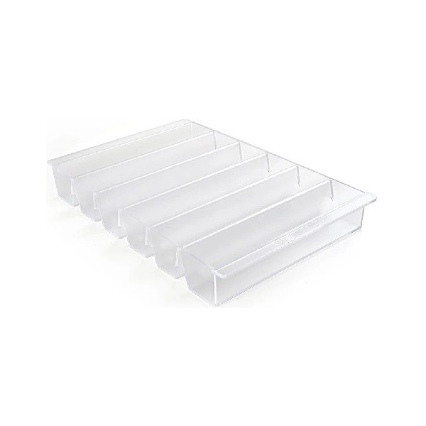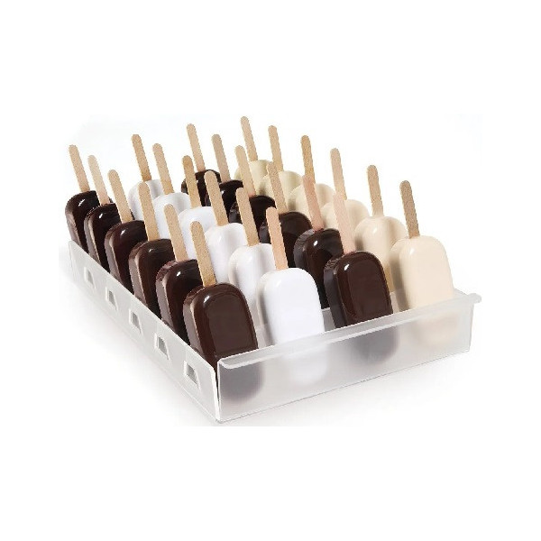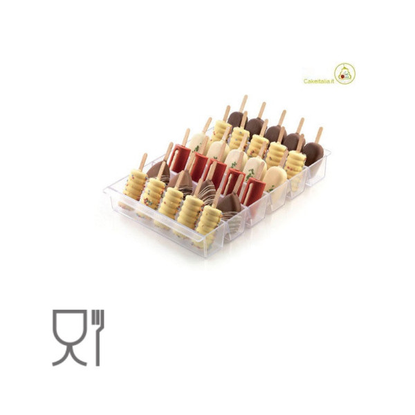 Espogel Up trasparente Silikomart: vassoio espositore per gelati su stecco in plastica, polistirene, trasparente di 235x360xh48 mm. ideale per presentare in modo funzionale i gelati su stecco in vetrina.