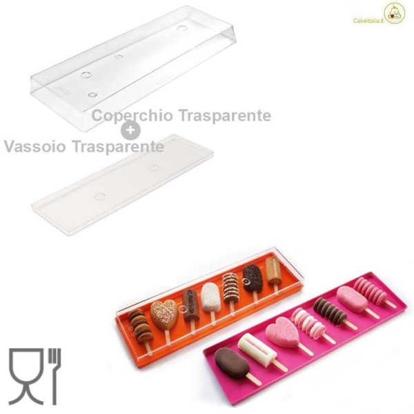 Small total i-gloo trasparente, vassoio con coperchio ideale come espositore per gelati e monoporzioni da Silikomart di lunghezza 395 x larghezza 109 x altezza 32 mm.