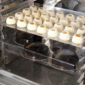 Espogel Down trasparente Silikomart: vassoio espositore per gelati biscotto e su stecco, posizionati verso il basso, in polistirene trasparente, da 235x360xh48 mm. Vassoio ideale presentare gelati o creazioni salate su stecco, per finger food, in modo funzionale.