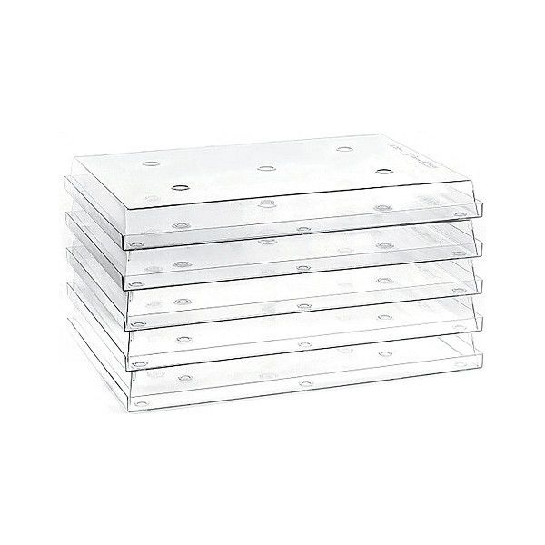 tutto in modo pratico e funzionale grazie all'alta trasparenza e alla presenza di piedini sul vassoio e sul coperchio.