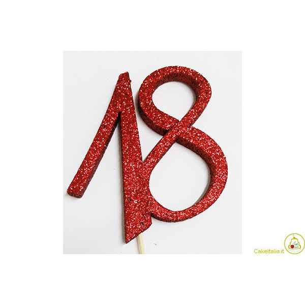 Decorazione per 18° compleanno in polistirolo glitterato completa di stecco per fissarlo a torte o altre basi in polistirolo