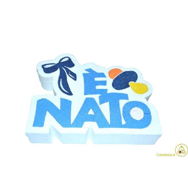 Festone Polistirolo con scritta celeste incastonata glitterata È Nato di 30 cm x 23 cm x 5 cm