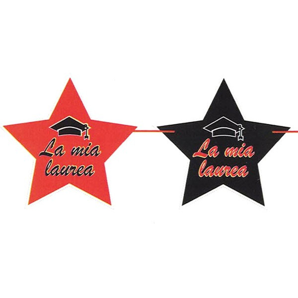 Festone in cartoncino a forma di stella con scritta "La mia laurea"