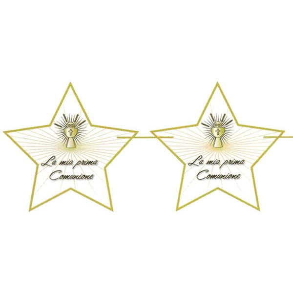Festone in cartoncino a forma di stella con scritta "La mia prima Comunione"
