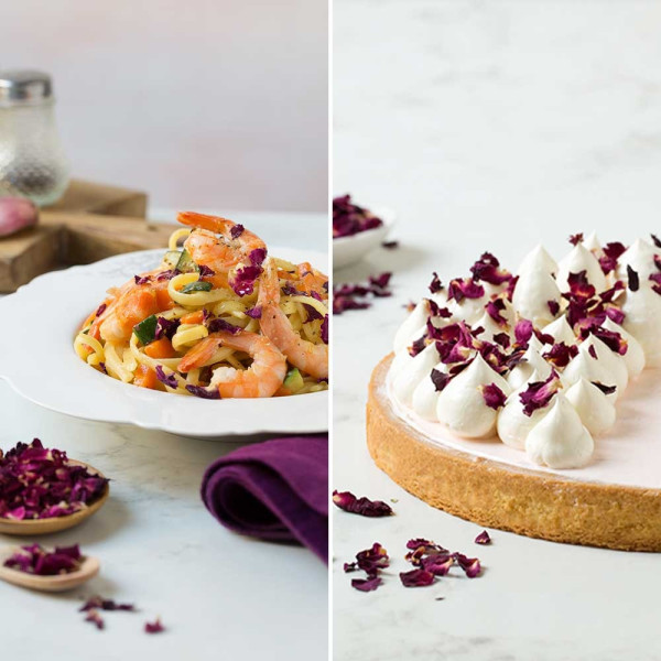 Fiori edibili di colore rosa da Decora. Ideali per decorare con eleganza e classe ad ogni tipo di preparazione culinaria sia dolce che salata