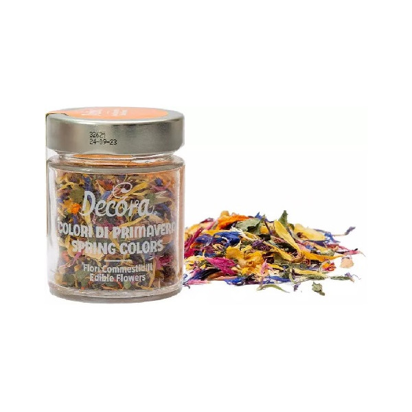 Mix di petali commestibili Colori di primavera: barattolo da 4 g di fiori edibili colorati da Decora. Ideali per decorare con eleganza e classe ad ogni tipo di preparazione culinaria sia dolce che salata
