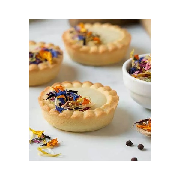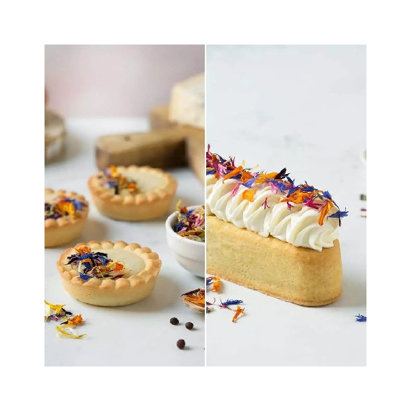 Fiori edibili colorati da Decora. Mix di petali di calendula, fiordaliso, malva, rosa, citronella, tagetes, menta rotundifolia, monarda ideali per decorare con eleganza e classe ad ogni tipo di preparazione culinaria sia dolce che salata