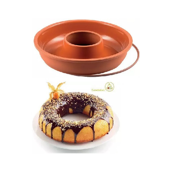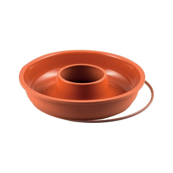Ciambellone Silikomart: stampo silicone, basso o savarin, color terracotta, forma di ciambella bassa, ruoto o budino con anello di supporto e tubo per ciambelle di ø24xh5,5 cm e volume 1,5 l