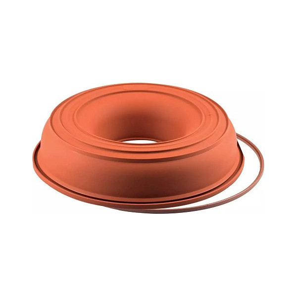 Stampo Ciambellone basso o Savarin in silicone professionale color terracotta, forma Ciambella Bassa, Ruoto o Budino con anello di supporto safe ring e tubo per torte a ciambella di diametro ø24xh5,5 cm e volume 1,5 l