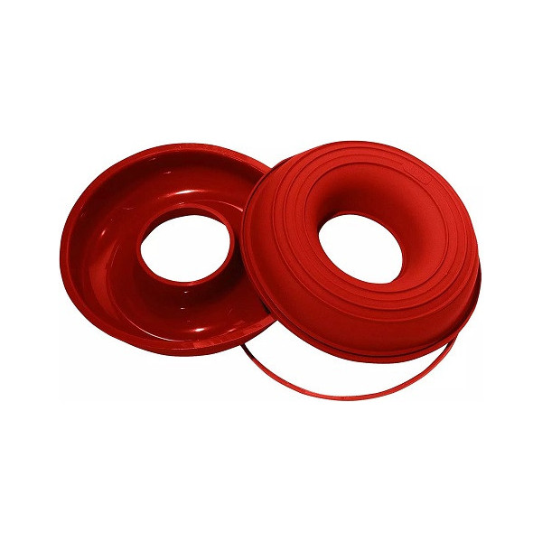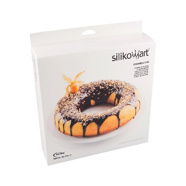 Stampo per torte a ciambella bassa o savarin in silicone flessibile e antiaderente realizzato in 100 % silicone liquido da Silikomart. Può essere messo direttamente dal forno al frigorifero e viceversa.