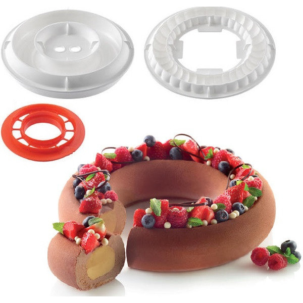 Kit Symphony o torta ciambella sinfonia da 140 cl è composto: 1 stampo più 1 inserto in silicone Top White più cutter o tagliapasta doppio uso da Silikomart