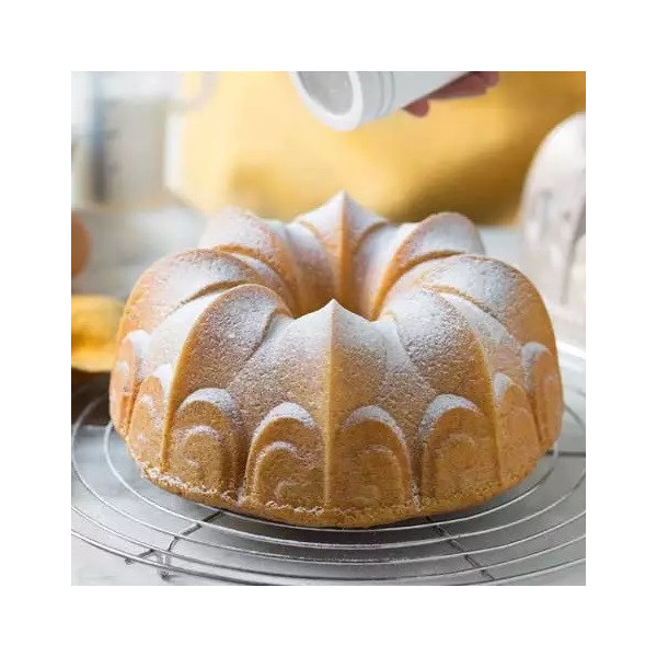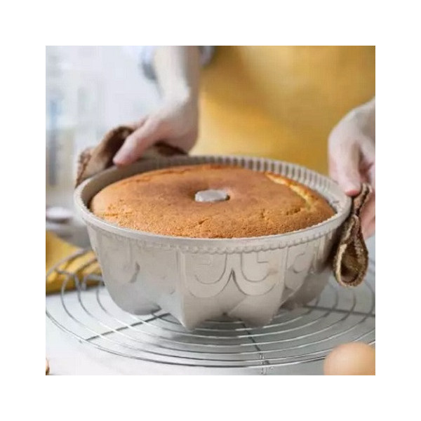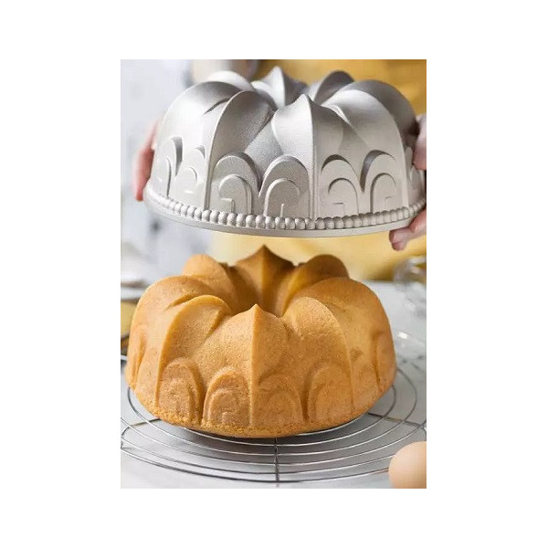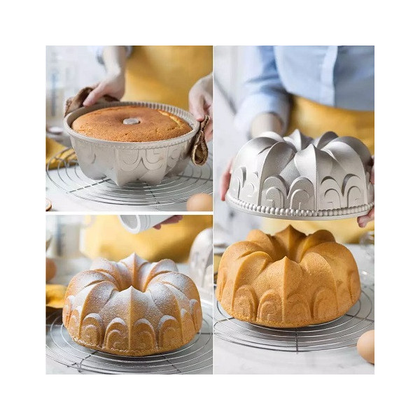 Gaia Decora: stampo in alluminio pressofuso antiaderente di alta qualità, color champagne, ad uso intensivo, stampo bundt cake, per ciambelle di diametro 24 cm ed alto 10 cm.
