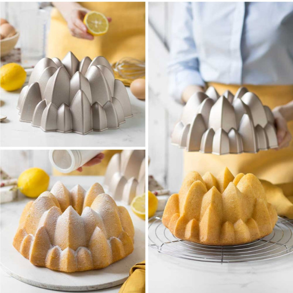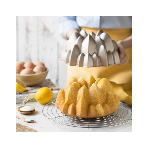 Alice Decora: stampo ciambella in alluminio pressofuso antiaderente di alta qualità, color champagne, stampo bundt cake, per uso intensivo di diametro 24 cm ed alto 9 cm.