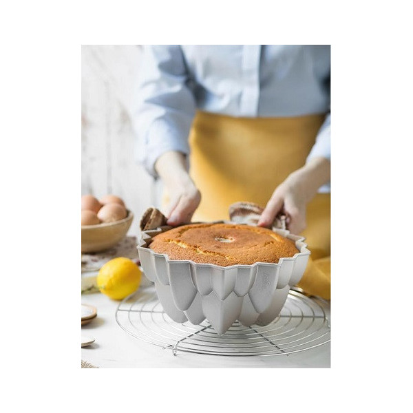 Stampo Intreccio Silikomart: stampo in silicone grigio per torte a forma di ciambella di fili intrecciati con effetto tridimensionale di ø21xh7cm