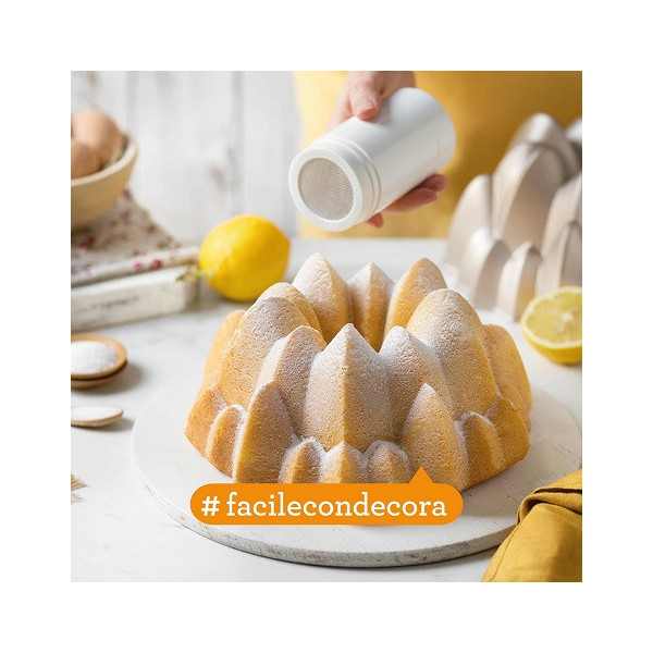 Spargi-zucchero Decora: ideale per farina, cacao, spezie in polvere o zucchero a velo, è in plastica per alimenti, con setaccio in acciaio inox e tappo per chiusura ermetica.