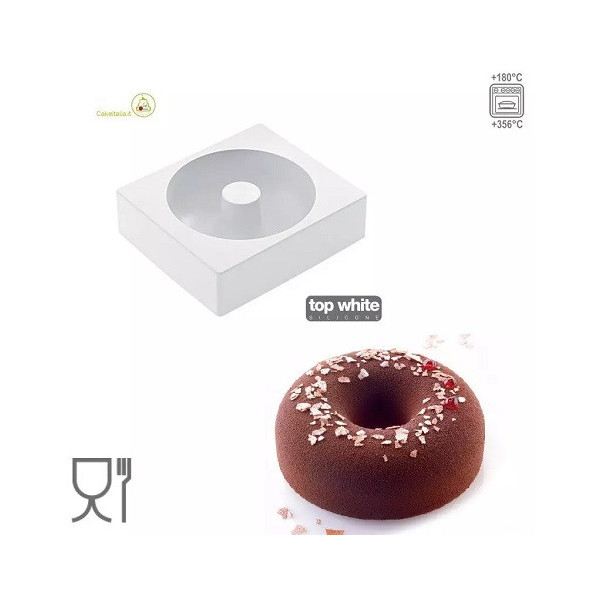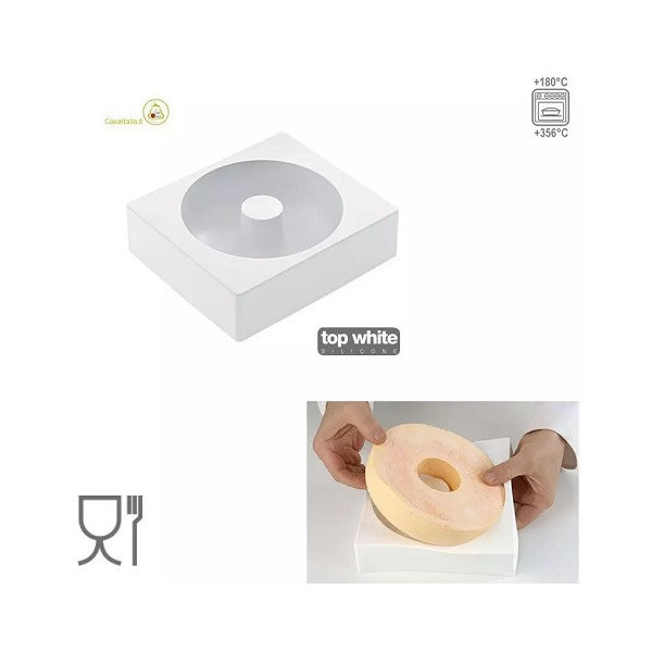 Savarin di ø16/8xh4 cm o ø18/6xh5 cm Silikomart: stampo in silicone platinico bianco, della linea Top White, ideale per semifreddi, torte e dolci a forma di savarin o ciambella.