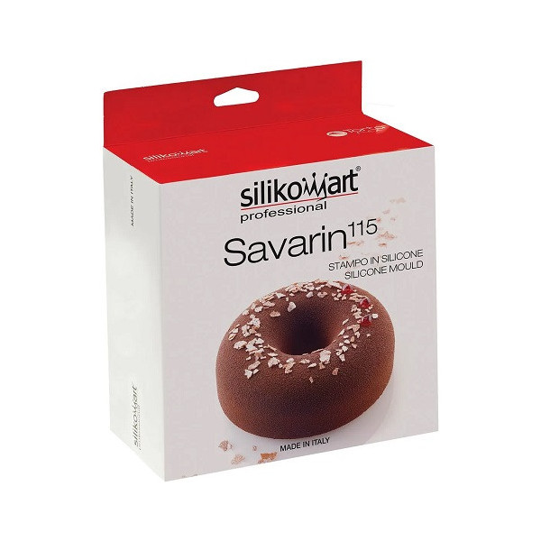 Savarin 115 Silikomart stampo per savarin o ciambella monoporzione di diametro esterno 11,5 cm, diametro interno 3 cm, altezza 4 cm e volume 345 ml.