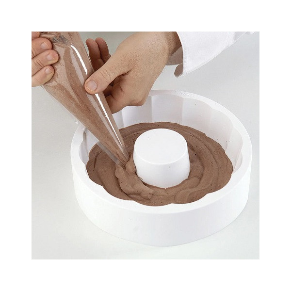 - con lo stampo Paradise, una ciambella tonda, in silicone bianco, con una cavità, da 22 cm x altezza 6 mm, per realizzare torta innovativa, sezionabile in 14 porzioni.