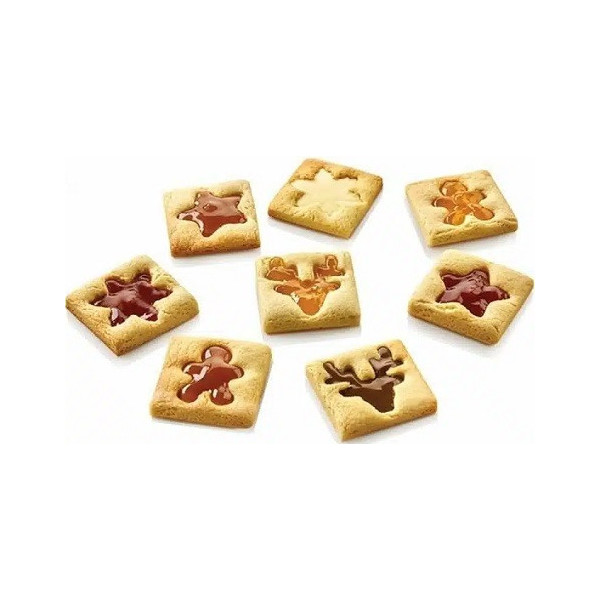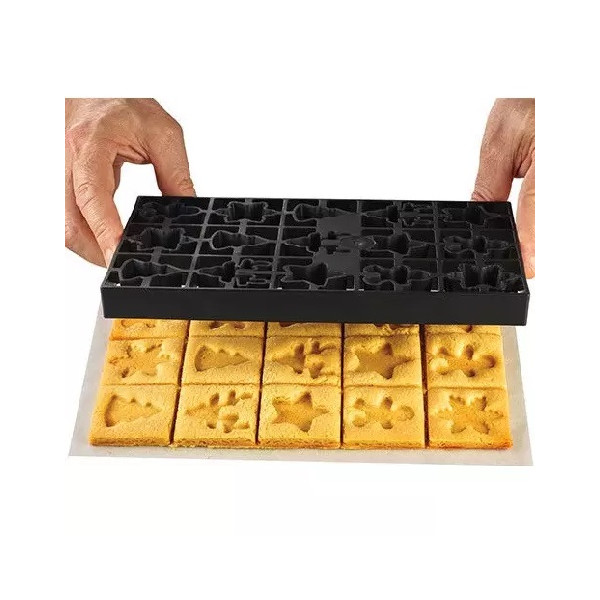 Voila' Winter Holiday da Silikomart è una teglia per biscotti, stampo rigido a doppia funzionalità, per tagliare e cuocere direttamente in forno, usali come: