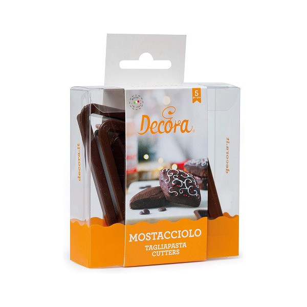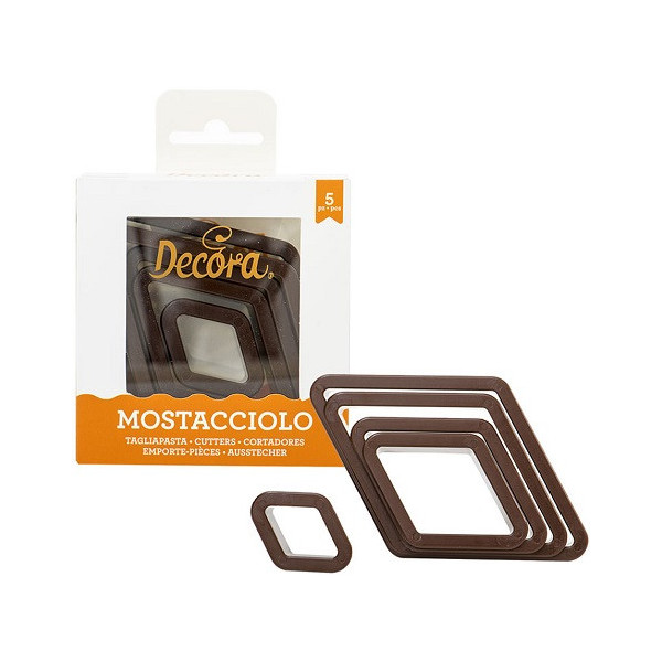 Tagliapasta mostacciolo da Decora: set 5 stampi in plastica ideali taglia-biscotti a forma di rombo o per realizzare il classico mostacciolo natalizio o per creare il decoro matelassé oppure usalo come tagliabiscotto rombo.