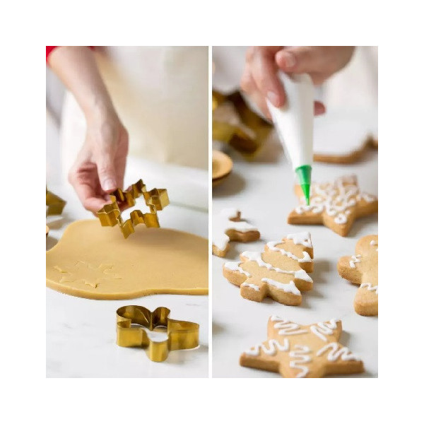 Caratteristiche set 5 taglia-biscotti Fantasie del Natale in acciaio dorato: