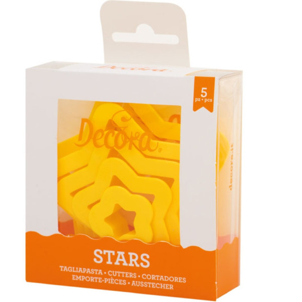 Stella o Star: 5 stampi in plastica ideali taglia-biscotti di dimensioni a partire da 2 cm a 10 cm, altezza 2,2 cm, a forma di stella da Decora.