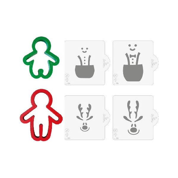 Ginger Christmas Decora, set per biscotti decorati a forma di omino natalizio o omino pan di zenzero, specifico per la festa di natale.