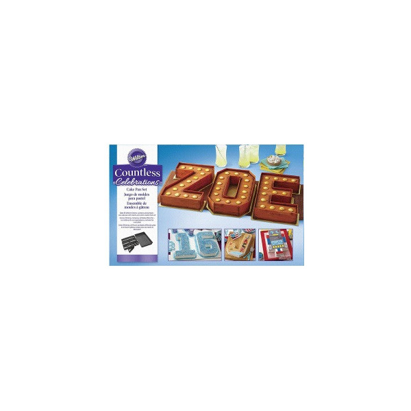 Set teglia componibile lettere e numeri, in acciaio antiaderente, ideale stampo torta numero o stampo numeri per cream tart, di dimensioni 38 x 23,5 x h 5 cm da Wilton.