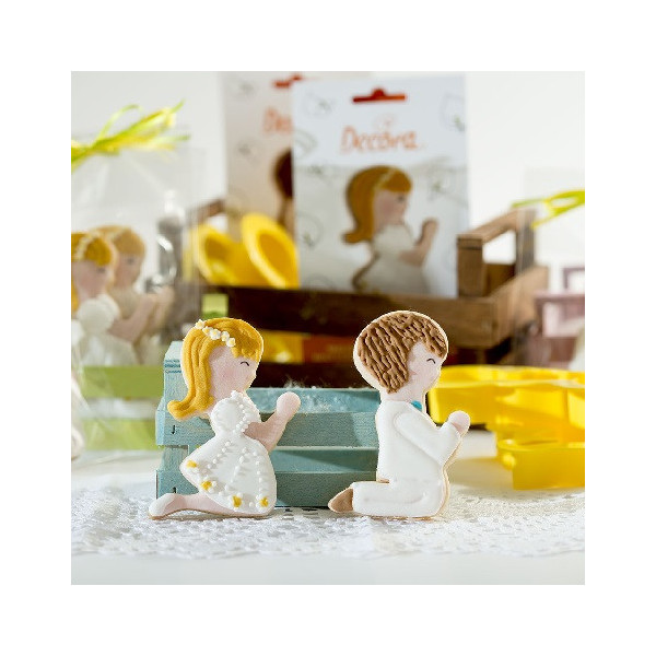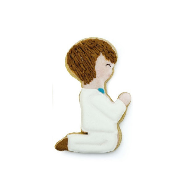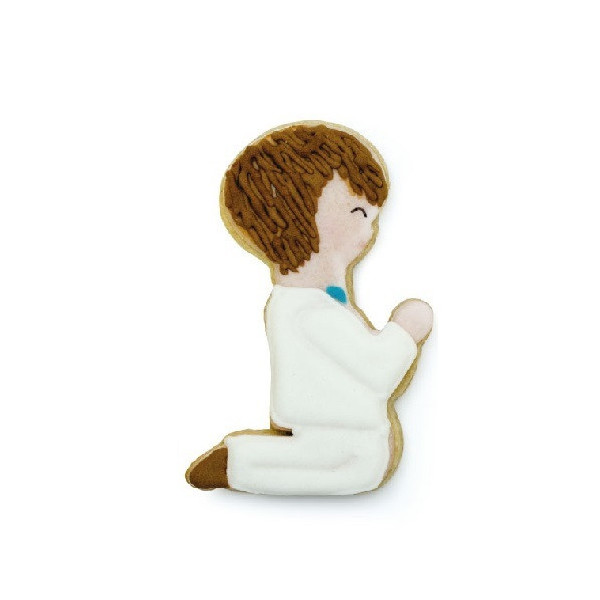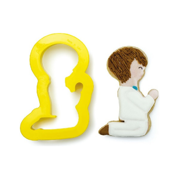 Stampo in plastica ideale come taglia-biscotti bambino in preghiera, per dare forma a biscotti a forma di bimbo alla prima comunione.