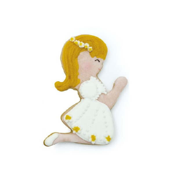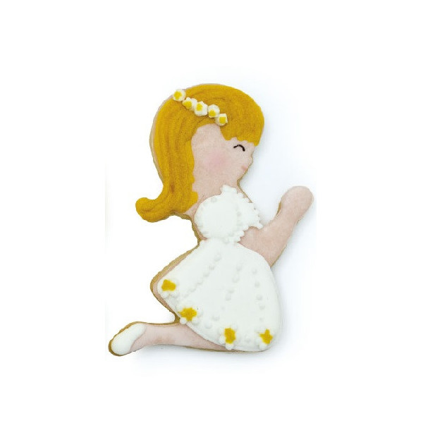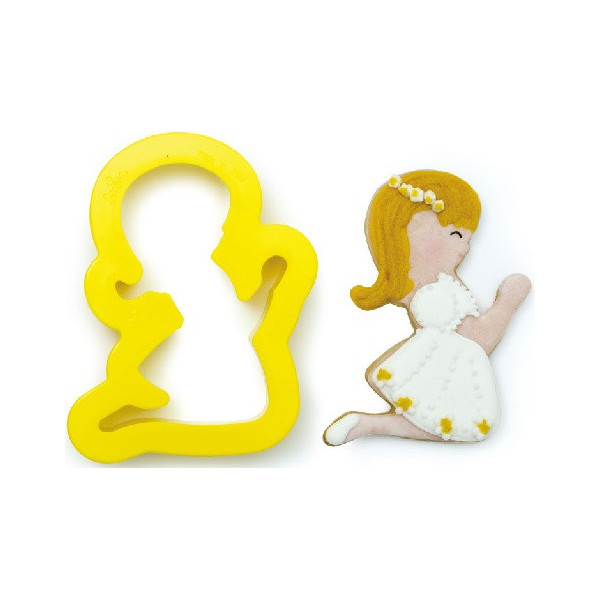 Stampo in plastica ideale come taglia-biscotti bambina in preghiera, per dare forma a biscotti a forma di bimba alla prima comunione.