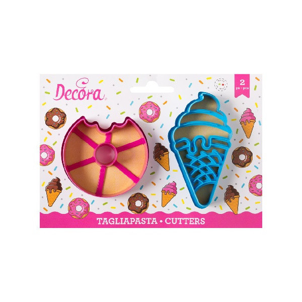 Set 2 tagliapasta a tema estivo Decora: 1 tagliapasta ciambella e 1 tagliapasta cono gelato in plastica.