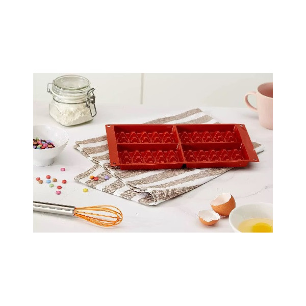 Stampo 15 babà piccoli SF019 di ø3,5x3,8 cm o SF020 11 medi di ø4,5x4,8 cm o SF021 8 grandi di ø5,5xh6 cm, in silicone flessibile e antiaderente color terracotta da Silikomart