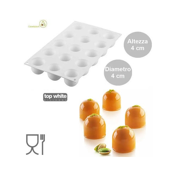 Stampo Dome o cupola 40 o 125 ml: stampo in silicone bianco, per dolcetti a forma sfera allungata tagliata alla base, dome o cupola di Silikomart