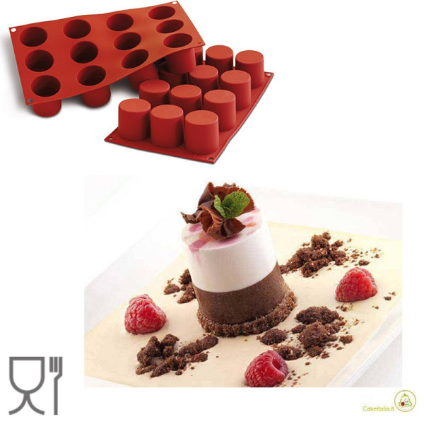 Lo stampo cilindri di Silikomart è realizzato in 100 % silicone liquido. Può essere messo direttamente dal forno al frigorifero e viceversa, ideale per uso alimentare.